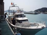 座間味初日は10時半に出航しウオッチングに出掛けました。これまでのウオッチングは「ちえ丸」と言う漁船型の船でのウオッチングだったのですが、今年は昨年12月に清さんが買った新艇「姫鯨」でウオッチングに出掛けました。(^^) この新艇「姫鯨」は船も広く、船の前方と2階でウオッチングが出来、なかなか快適でした。もちろんトイレも完備、シャワーも付いておりこの船でのダイビングも今から楽しみです。